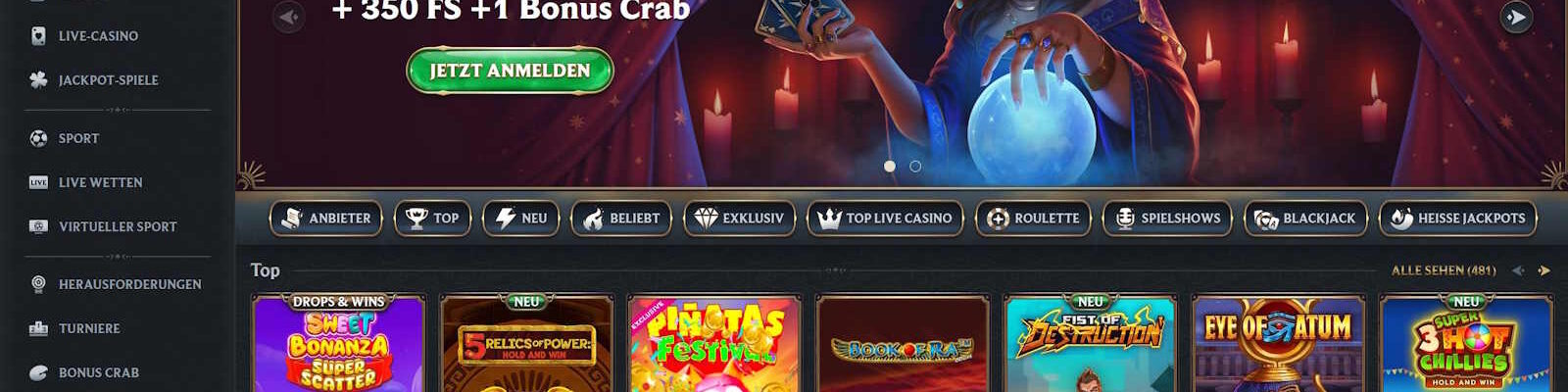 250% bis 3000 € + 350 FS + 1 Bonus Crab