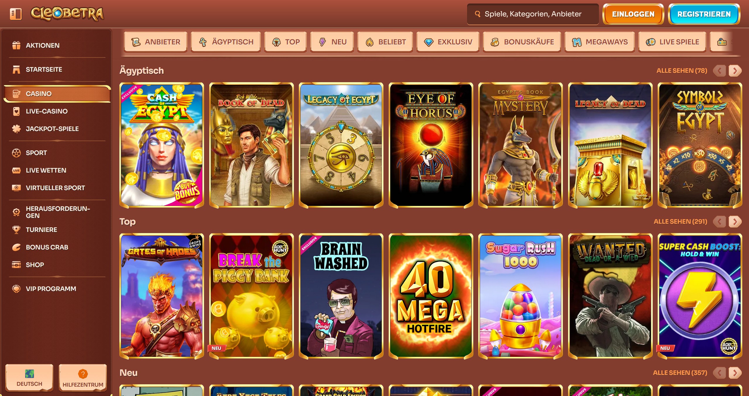 Cleobetra ist ein neues Egypt-Style Online Casino, das mit zahlreichen der besonders beliebten Ägypten-Slots punktet.