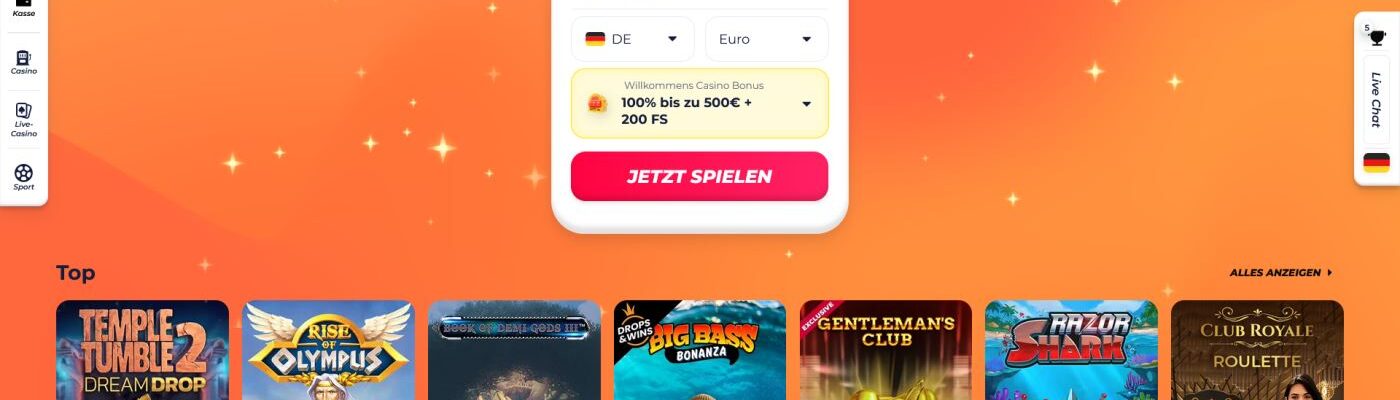 | Casino Bonus | 100% bis 500 EUR + 200 Freispiele |