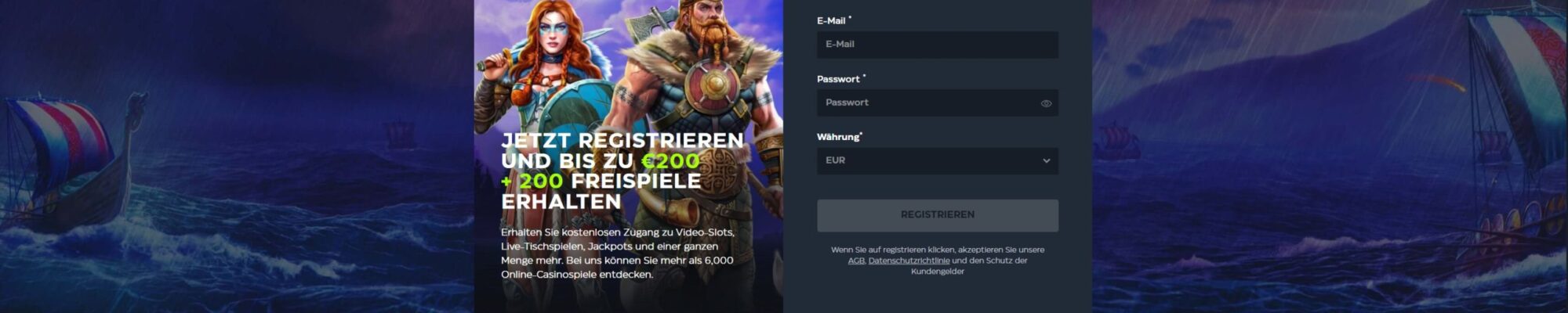 Neue Spieler erhalten für die Registrierung ein Willkommenspaket von 200 € + 200 Free Spins auf die ersten drei Einzahlungen.