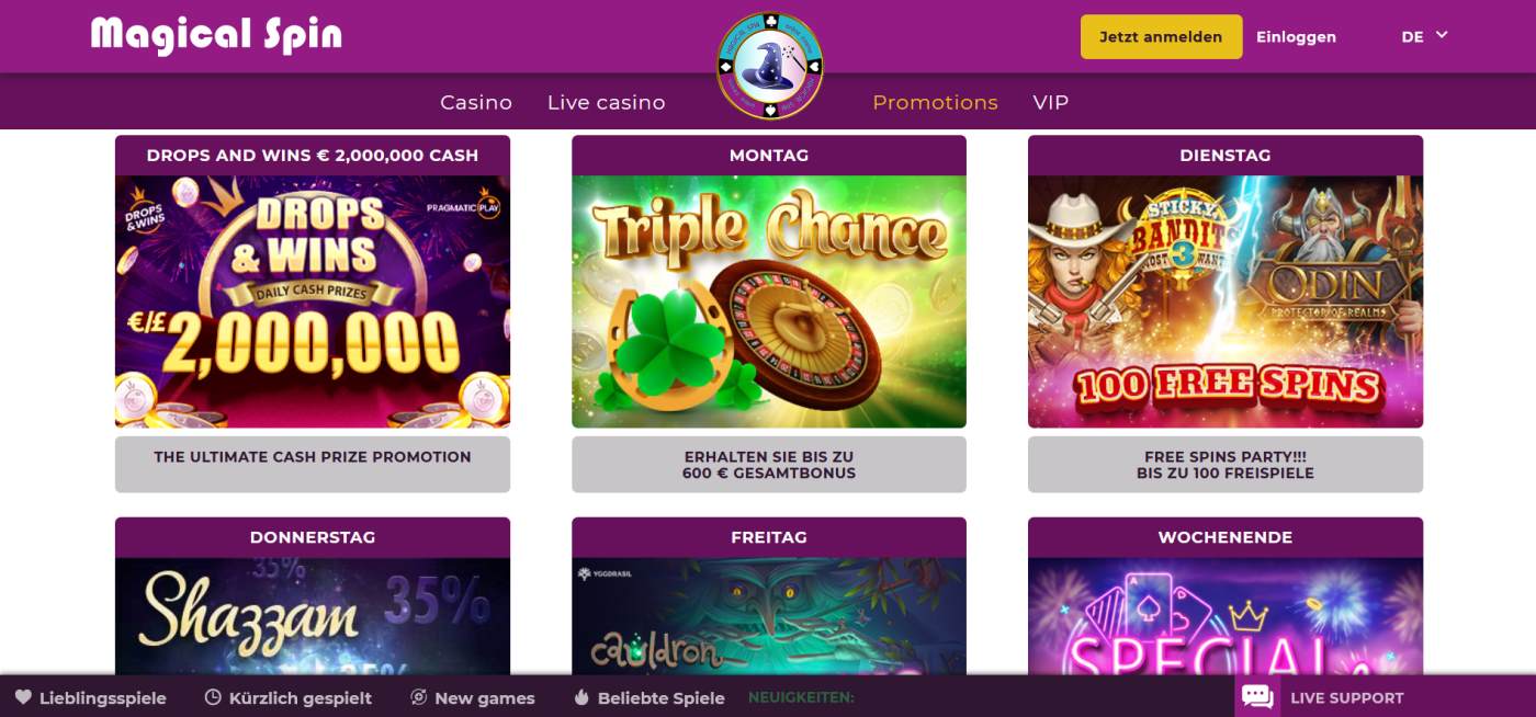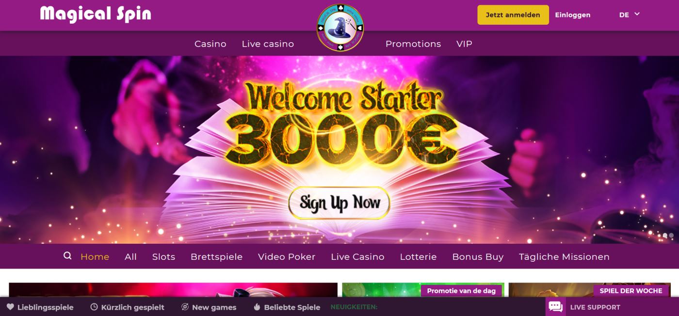 Mit Magical Spin wird dir ein modernes Casino mit einer großen Auswahl an Spielen und Boni geboten. Die Bedienungen sind was den Umsatz angeht leider etwas hart, dafür hast du aber 30 Tage um diese zu erfüllen.