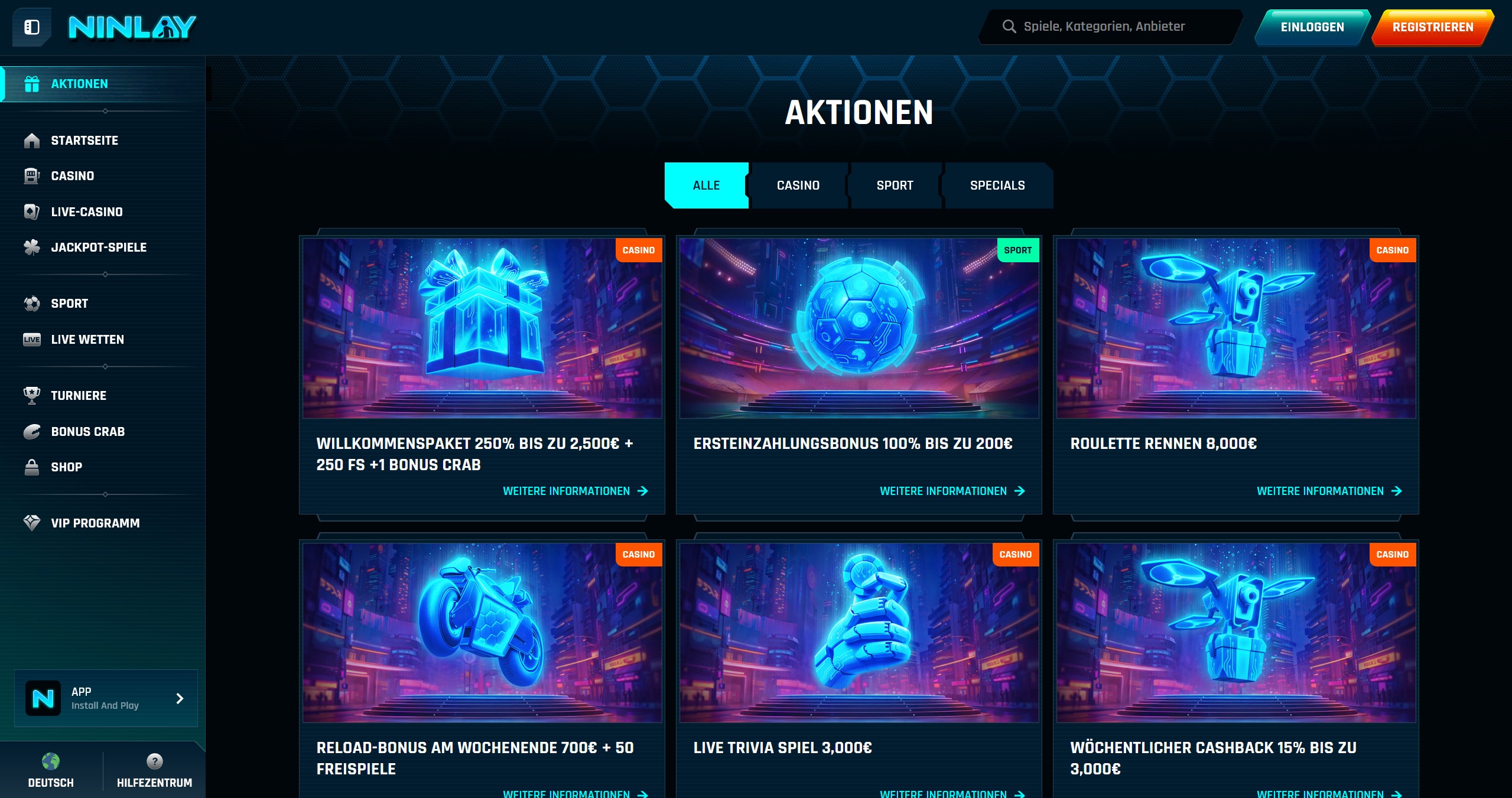 Die Mindesteinzahlung, die nötig ist, um den Ersteinzahlungsbonus und Freispiele zu erhalten, beträgt 20 EUR.