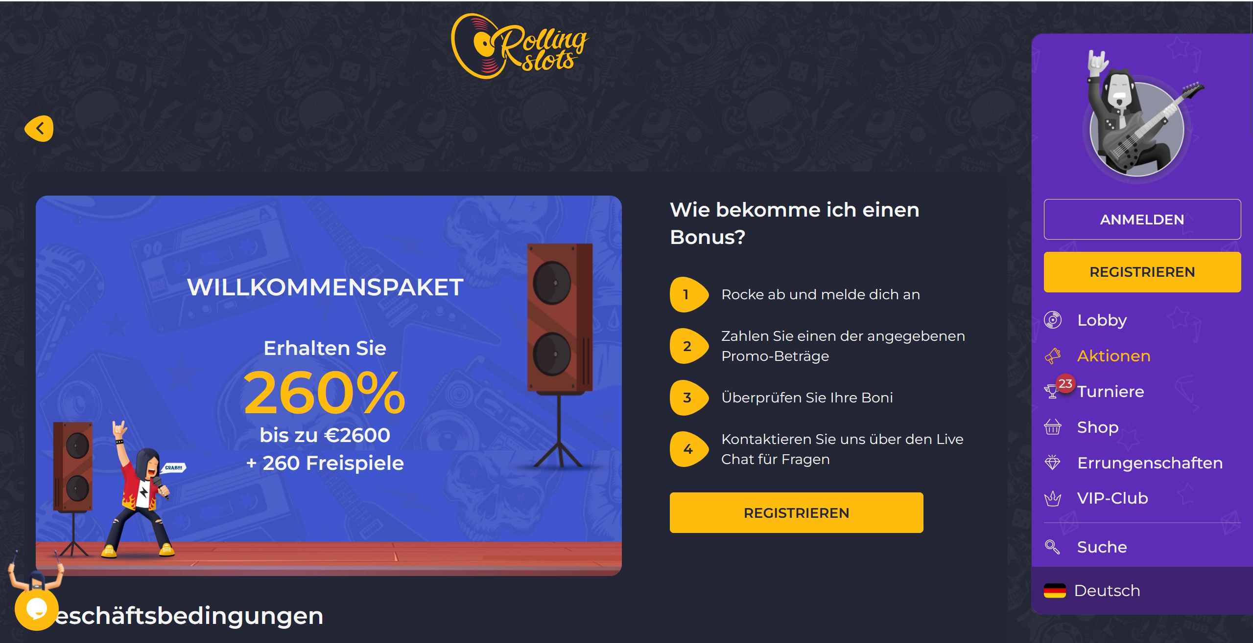 Registrierung bei RollingSlots
