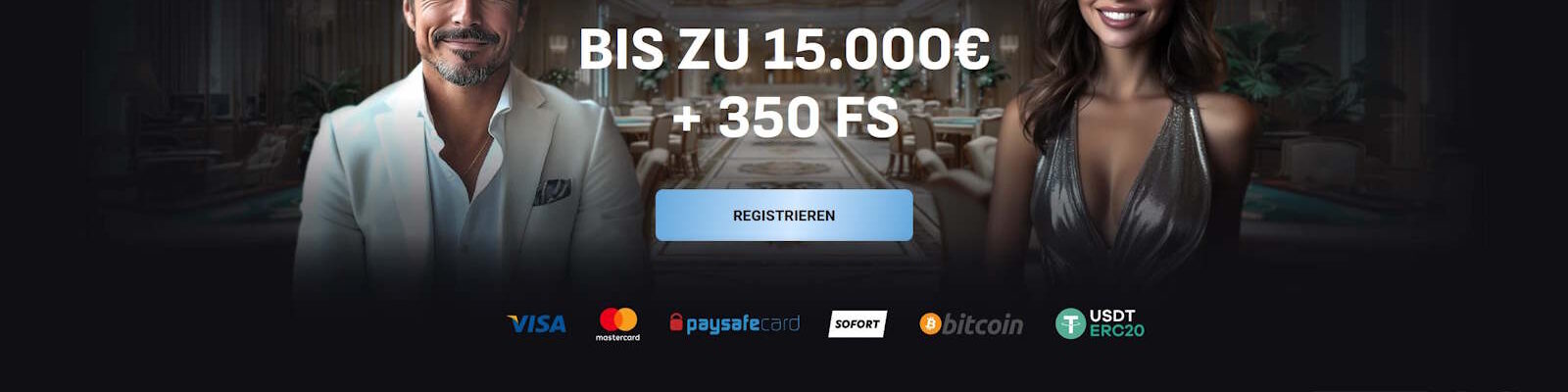 4-facher Willkommensbonus 15.000 € + 350 FS