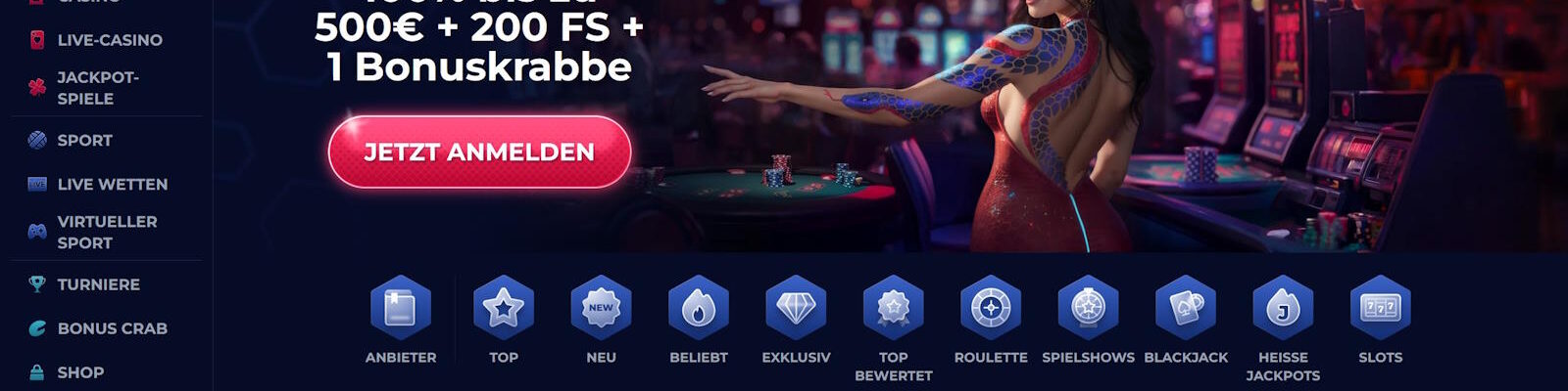 Bis 500€ Willkommensbonus + 200 FS + 1 Bonuskrabbe