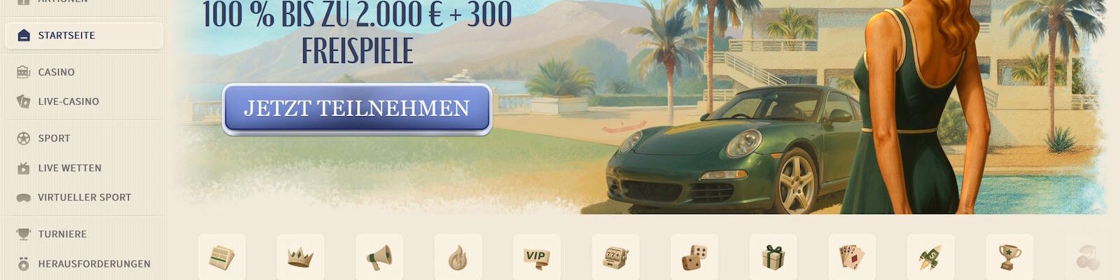 100% bis zu 2000 € + 300 Freispiele Neukundenbonus