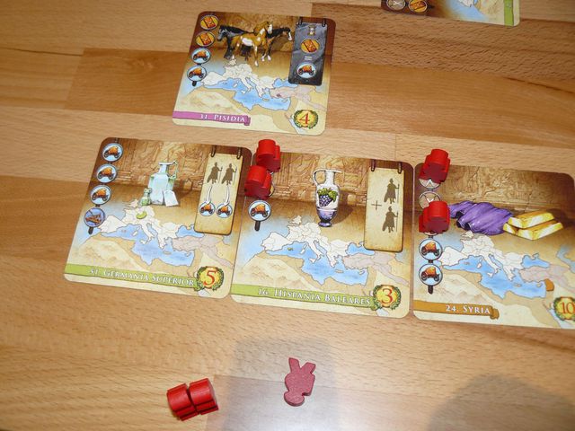 Die Spieler bewegen jetzt je nach Marker Symbol ihre Legionen. Entweder nimmt man dabei aus dem eigenen Vorrat eine Legion und setzt dies auf das entsprechende Symbol der Zielkarte oder aber auf eine andere.