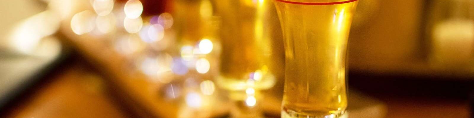 • Schnapsgläser und viel Alkohol zum Nachschenken