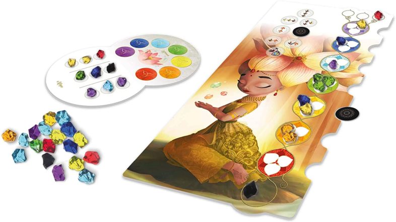 Das Taktikspiel Chakra von Game Factory steht auf der Empfehlungsliste für das Spiel des Jahres 2021. Chakren bezeichnet man in der traditionellen indischen Lehre die sieben Energiezentren. Diese verbinden den physischen Körper mit dem Astralleib. Auf dem eigenen Spielertableau sieht man diese als Farbkreise dargestellt. Ziel des Spieles ist es, diese Farbkreise mit den passenden Energiesteinen zu füllen. Ist ein Chakra voll, darf man es überspringen. Hier zählt nicht nur Schnelligkeit im Spiel sondern auch richtig zu kombinieren. Schön ist, dass man dieses Spiel auch zu zweit und sogar Solo sehr schön spielen kann.