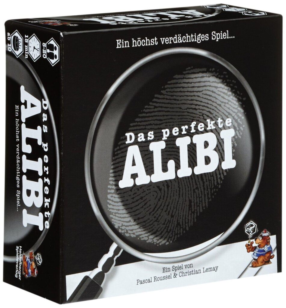 Das Brettspiel Das perfekte Alibi ist nichts für Spieler mit schwachen Nerven. In diesem Spiel werden zwei der Teilnehmer eines Verbrechens beschuldigt, welches sie anschließend mit einem Alibi widerlegen müssen. Die anderen Spieler geben sich als Fahnder und Richter aus. Während der Richter sich die Anklagen der Spieler anhört, müssen die Fahnder dafür sorgen, dass die Verdächtigen mit ihren Alibis ins Straucheln geraten. Nur wer am Ende ein perfektes Alibi besitzt, kann die Gerichtsverhandlung und somit die Partie für sich entscheiden.