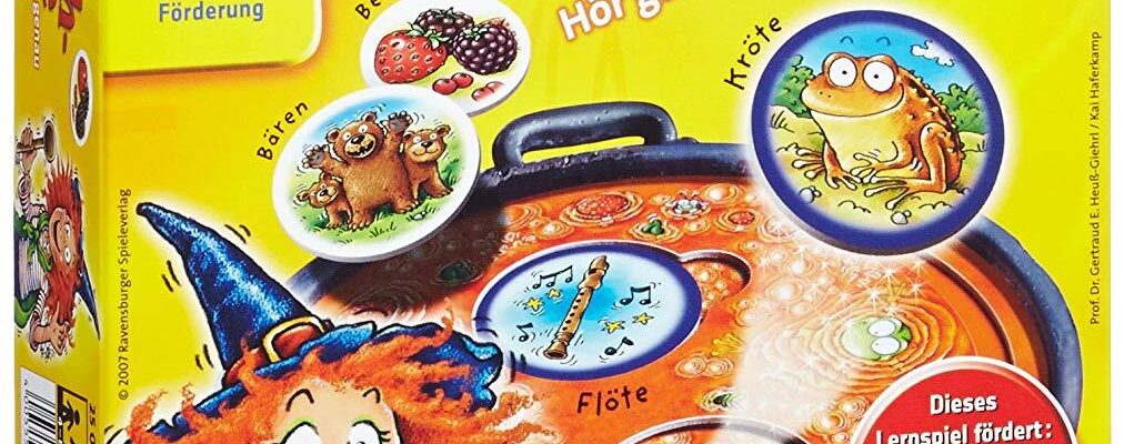Die freche Sprech-Hexe ist ein Spiel der Lernspielreihe „Spielend Neues Lernen“ aus dem Hause Ravensburger. Das Kinderspiel fördert die Wahrnehmungsfähigkeit. Des Weiteren sind genaues Zuhören und eine deutliche Aussprache gefordert. So unterstützt ihr die Entwicklung eures Kindes gezielt. Dieses Spiel bleibt ein dauerhafter Renner, denn es gibt mehrere Spielmöglichkeiten, die reichlich Abwechslung bringen. Zudem ist die Sprech-Hexe in unterschiedlichen Schwierigkeitsstufen spielbar.