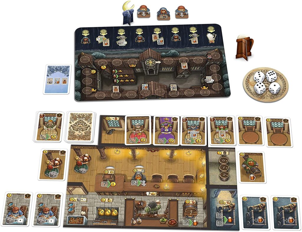 Das wichtigste beim Spiel ist die Taverne auszubauen. Das gelingt nur mit vielen Gästen und hohen Einnahmen. Es können fünf Module insgesamt aufeinander aufgebaut werden. Jedes bringt kleine Änderungen mit sich und steigert die Komplexität. Jedes Spiel läuft immer über acht Runden und besitzt 7 Phasen, die man in derselben Reihenfolge spielt.