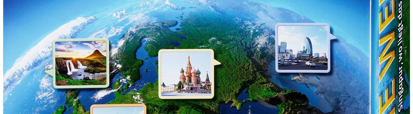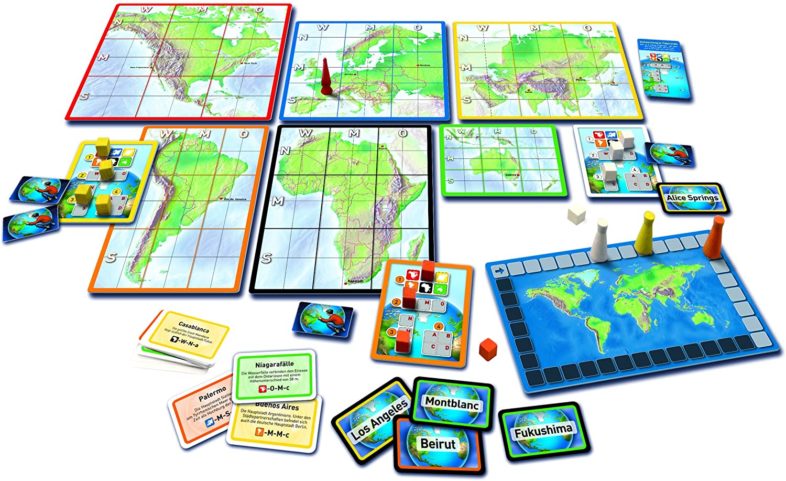 Das Brettspiel mit dem Namen Die Welt vom Kosmos Verlag begeistert groß sowie auch klein. Auf den sechs Kontinent Tafeln versucht man so genau wie möglich einen Ort zu finden, der jetzt gesucht ist. Das Wissensspiel ist nicht nur was für Geografiekenner sondern eignet sich auch, etwas dazu zu lernen. Wenn man ziemlich genau getippt hat, bekommt man eine bestimmte Anzahl an Punkten. Natürlich kann man auch hoch pokern bei dem Spiel, es besteht dann aber die Möglichkeit auch dabei leer auszugehen. Gewonnen hat der Spiel, der am Ende am weitesten vorne ist.