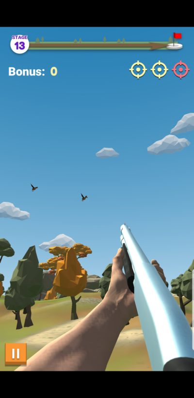 Die simple Steuerung ist optimal für Spieler die direkt drauf losschießen möchten, ohne sich mit einer komplizierten Handhabung zu befassen. Per Klick auf den Bildschirm erfolgt ein Schuss aus der automatischen Shotgun. Das Zielen ist ebenfalls automatisch. Gamer können sich voll und ganz auf das Timing konzentrieren. Die Enten fliegen zeitversetzt am babyblauen Himmel. Das Tempo und die Fluggeschwindigkeit variieren von Level zu Level. Im Hauptmenü gibt es verschieden Menüpunkte. Hier kann man den Sound und die Hintergrundmusik einstellen oder neue Waffen im Store erwerben. Außerdem können Gamer die Sprache verändern. Deutsch wird bis dato noch nicht angeboten.
