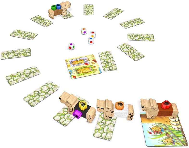 Das Würfelspiel Floh am Po von Zoch kann man prima ab vier Jahren spielen. Es ist zwar kein Spiel für lange Spieleabende aber kurz vor dem Abendessen kann man sicher mal einen Durchgang spielen. Die Flöhe freuen sich auf den Hundebus um schnell nach Italien zu kommen. Denn nur wenn es den Hunden Waldi, Ronja, Bonny und Schnuffko so richtig juckt im Fell, dann geht es auch super schnell voran. Gewinner ist der Spieler, der es schafft, seinen Hund als erstes durch das Ziel zu bringen.