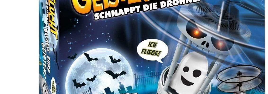 Das Geschicklichkeitsspiel Geisterflucht von Megableu ist eine Kombination von spannendem Spiel und Technik. Eine Drohne sorgt für die Spannung im Spiel. Über eine Abschussrampe schnippt jeder Spieler seine Geister und versucht sie in der Drohne zu landen. Sitzt ein Geist in der Drohne, dann startet der Motor und hebt drei Sekunden später ab. Aber aufgepasst, ganz schnell kann dich ein anderer Geist von deinem Platz schießen und dadurch selbst flüchten.