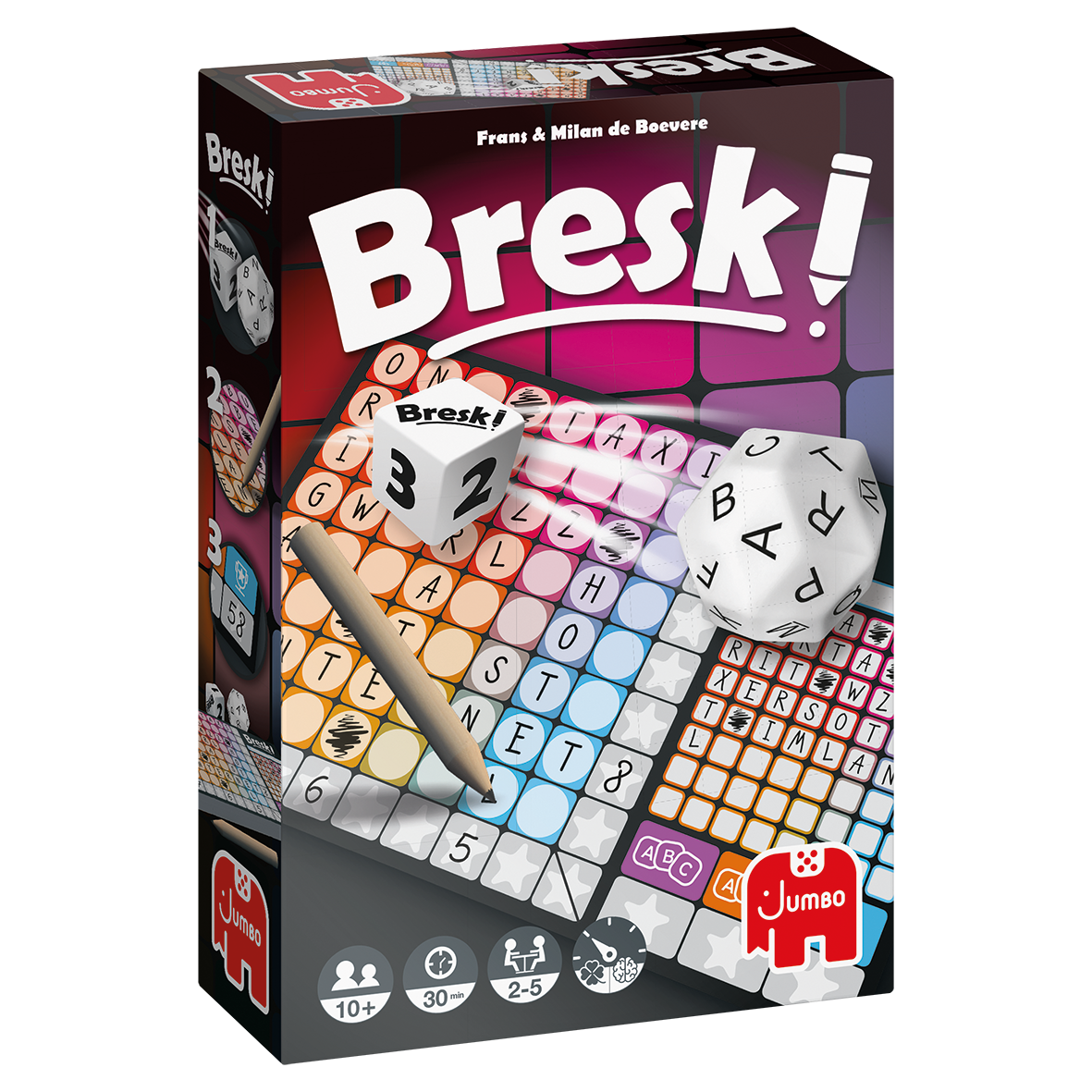 Das Würfelspiel Bresk! Von Jumbo Spiele ist so eine Art Kreuzworträtsel. Die Würfel geben die Buchstaben an, die ...