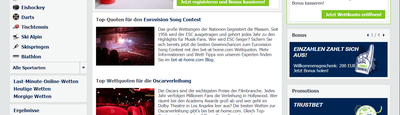Neben den beiden eben genannten britischen Wettanbietern kommt mit bet-at-home ein deutsche Anbieter. Auch hier ist es wie bei den anderen beiden so, dass unter Politik- und Gesellschaftswetten unterschieden wird. Mehr über bet-at-home erfahrt ihr hier.