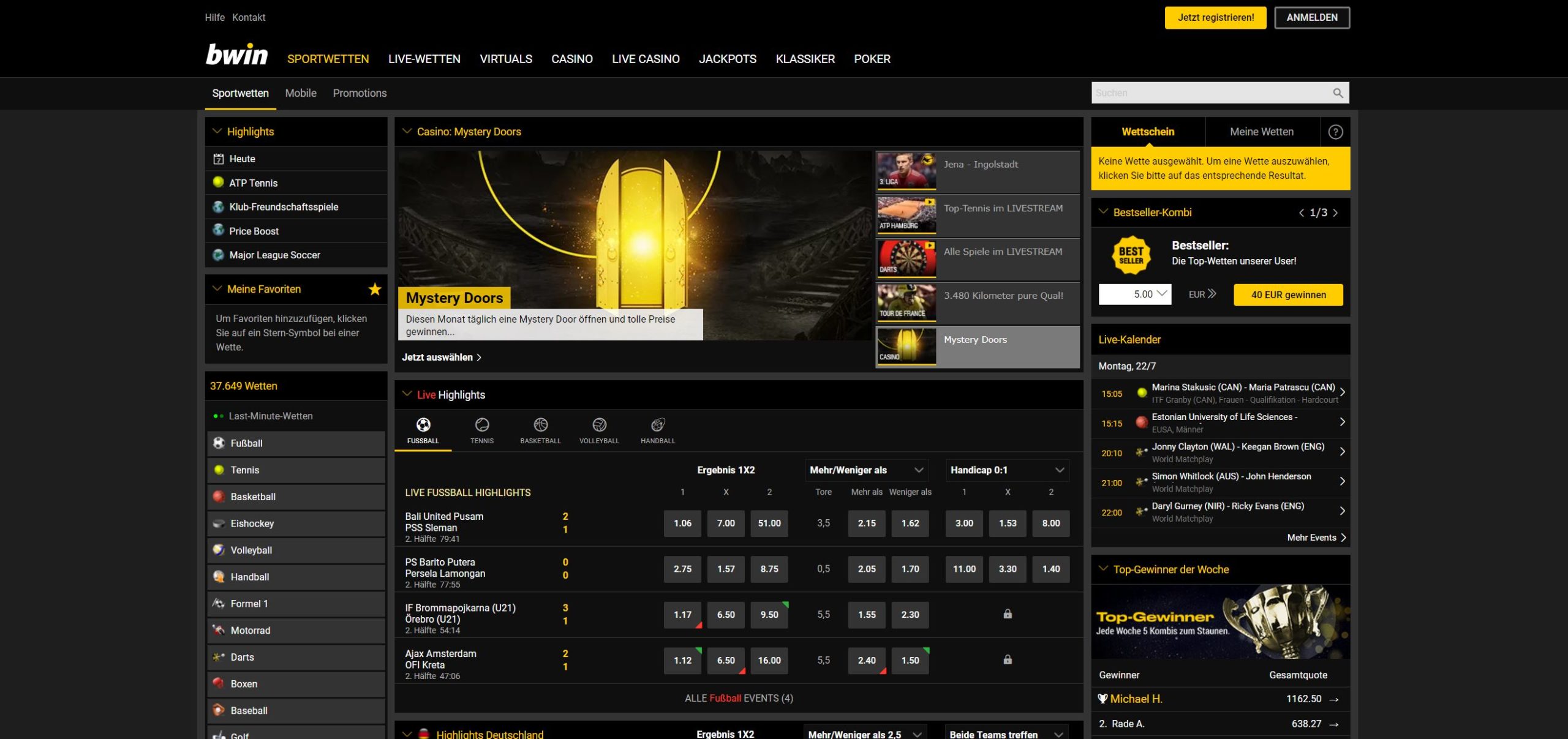 Willkommen in der größten Sportwetten-Arena der Welt! Was Sportwetten angeht, ist bwin einer der beliebtesten online Anbieter. Neben ...