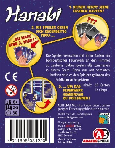 Das Wort „Hanabi“ kommt aus dem Japanischen und bedeutet so viel wie „Feuerwerk“. Bei diesem Kartenspiel entfachen die Spieler in der Tat gemeinsam ein kleines Feuerwerk und es gibt entweder nur Sieger oder nur Verlierer.