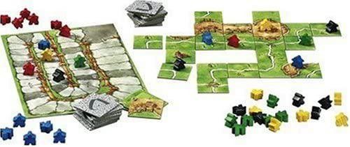 In „Carcassonne“ bauen die Spieler durch das Zusammenfügen von verschiedenem quadratischem Plättchen eine große Landkarte. Durch die sogenannten „Gefolgsleute“, die als Spielfiguren fungieren, können alle Mitspieler Städte, Straßen, Gebäude und Wiesen bauen bzw. erhalten und dadurch Punkte sammeln.