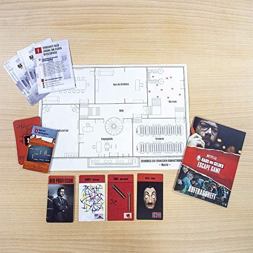 In dem Spiel Haus des Geldes – Kartenspiel von Jumbo ist in Spanien in einer Banknotendruckerei ein großer Coup am Laufen. Den Plan eines Professors Banknoten in kleinen Einheiten zu drücken, führt dabei die Einbrecherbande durch. Doch die Geiseln im Haus versuchen das Drucken der Scheine mit allen Mitteln zu verhindern. Daher entstehen bei diesem Bluff Spiel immer zwei Teams die gegeneinander antreten müssen. Das rote Team besteht aus den Einbrechern und dem Professor und haben das Ziel bis zum Ende der fünften Runde eine bestimmte Geldsumme zu drucken. Das blaue Team welches aus den Geiseln besteht und der Inspektorin Raquel versuchen den Plan der Gangster zu vereiteln, womit sich die Beute der Einbrecher verringert.