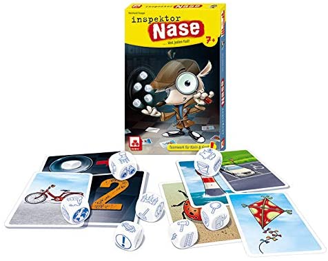 Bei dem Kinderspiel Inspektor Nase ermitteln die Mitspieler gemeinsam. Jeder Spieler schlüpft in die Rolle eines Ermittlers und gibt den Mitspielern wichtige Hinweise. So kommt jeder Hinweis für Hinweis dem Beweisstück etwas näher. Hier kann man gemeinsam diskutieren, kombinieren und um die Ecke denken. Ausgenommen Inspektor Nase, der darf nämlich nicht direkt helfen sondern nur mit seinen Hinweisen Tipps geben. Wer es schafft, über fünf Runden hin die Hinweise von Inspektor Nase richtig zu deuten, der kommt seinem Spiel näher.