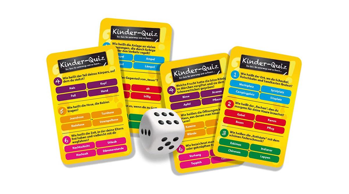 Zunächst werden die Quizkarten gut durchgemischt. Legt sie in die Mitte des Tisches oder – falls ihr mit Auto, Bahn oder Flugzeug unterwegs seid – haltet sie in der Hand. Nun wird im Uhrzeigersinn reihum gewürfelt. Der Spieler mit der höchsten Zahl darf beginnen. Falls die Spieler noch nicht lesen können, benötigt man einen Vorleser für die Fragen und die zur Auswahl stehenden Antworten.