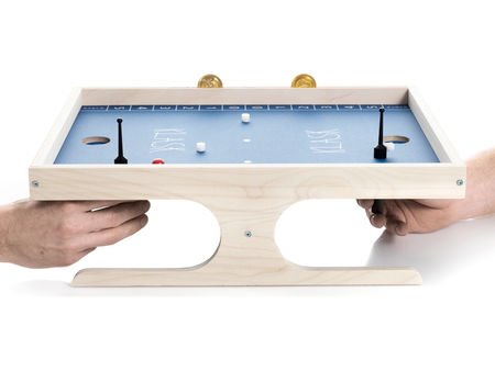 Die Spieler bewegen bei Klask – ein fantastisches Activity Spiel, mit Hilfe von einem Magneten, der sich unter dem Tisch befindet, ihre Figuren. Bei diesem Spiel ist es das Ziel mit der eigenen Figur den Gegner zu Fehlern zu zwingen oder Tore zu schießen.