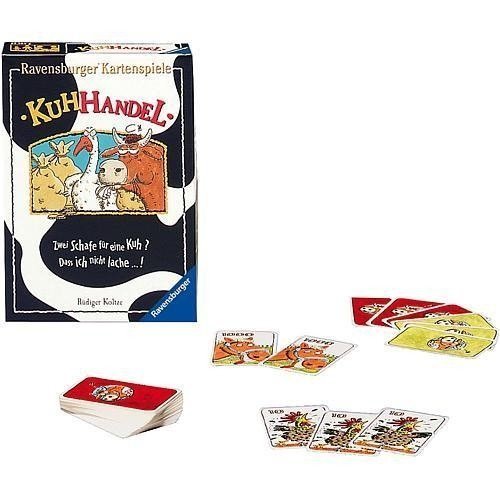 Kuhhandel ist ein lustiges Kartenspiel für 3 bis 5 Spieler ab einem Alter von 10 Jahren. Bei diesem Spiel geht es darum, Tiere mit höchstem Punktwert zu ersteigern und am Spielende die meisten Punkte zu haben. Hierbei ist jedoch ein wenig Strategie nötig, denn auch die anderen „Bauern“ schlafen nicht.