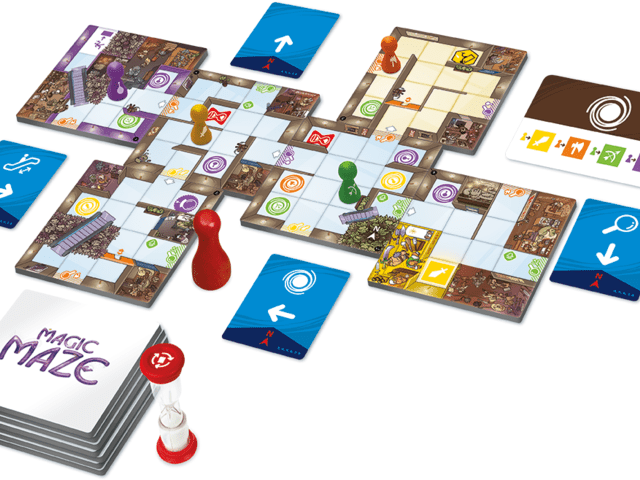 Die Spieler durchqueren gemeinsam mit ihren Helden in Magic Maze ein Labyrinth. Das hört sich einfacher an als es ist, denn nur in kurzen Phasen dürfen sich die Spieler absprechen. Schweigen ist ansonsten angesagt.