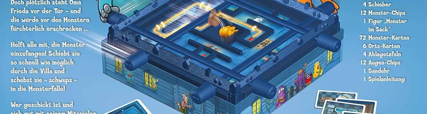 Bei dem Geschicklichkeitsspiel Monsterfalle ist vor allem Teamgeist gefragt. Es tummeln sich Monster in der alten Villa und haben viel Spaß dabei. Nur Oma Frieda, die zu Besuch kommt, versteht diesen Spaß nicht. Deshalb müsst ihr versuchen die Monster so schnell wie möglich vor ihr zu verstecken.