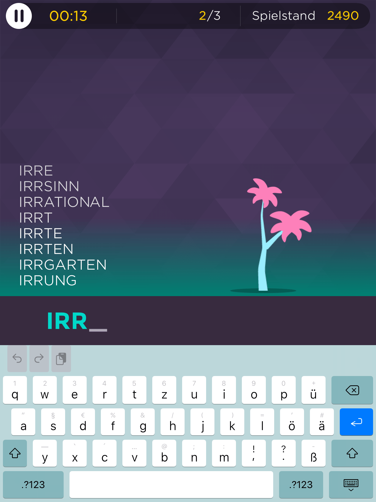 „Grow“ ist Englisch und bedeutet „wachsen“. Es geht in diesem Spiel darum, durch Wörter mit demselben Anfang Pflanzen wachsen zu lassen. Gegeben wird immer der Anfang eines Wortes, hier mal ein Beispiel:
