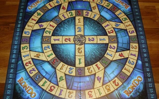 Bei dem Brettspiel Rondo versucht man seine Steine so geschickt wie möglich auf dem Spielplan abzulegen, um möglichst viele Punkte zu bekommen. Man darf die Steine nur auf die passenden Farbfelder ablegen und nur zusammenhängend. Je nachdem, wie viel Punkte auf dem gelegten Feld stehen, erhält man diese.