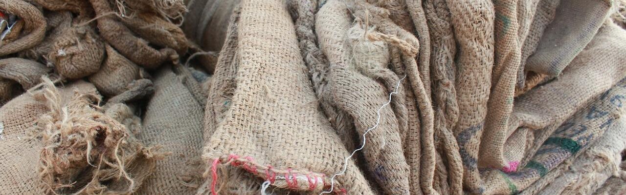 Klassischerweise verwendet man Jute- oder Burlapsäcke, es können aber auch andere stabile Materialien wie große, strapazierfähige Plastiktüten benutzt werden.
