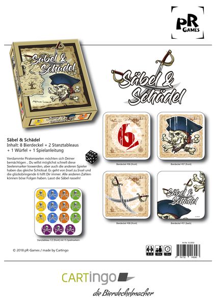 - 8 Bierdeckel ( 6x eine Insel, 1x ein Schädel und 1x ein Säbel)