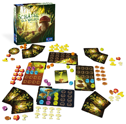 Im Brett– bzw. Familienspiel „Schätze des Waldes“ spielen Pilze die Hauptrolle, diese zu sammeln und am Ende des Spiels die meisten im Korb zu haben. Pilze im herbstlichen Wald erst einmal zu finden, genau diese geschickt zu sammeln, die am meisten wert sind, ist das Ziel.