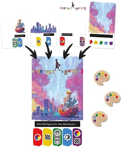 Das Karten Solo Spiel Canvas lässt die Spieler in die Rolle eines Malers schlüpfen, der an einem Kunstwettbewerb teilnimmt. Dabei muss man Kunstkarten sammeln und immer drei von Ihnen zusammenlegen um ein einzigartiges Gemälde zu erschaffen. Auf den Karten ist ein Kunstwerk zu sehen und eine Reihe von Symbolen, die man später bei der Punktevergabe verwenden kann. Die Symbole werden aufgedeckt oder verdeckt.