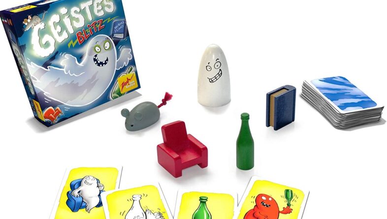 Das Spiel Geistesblitz zum Beispiel. Dieses pfiffige, durchaus kniffelige Spiel, bei dem es darum geht möglichst schnell den Gegenstand, der auf der offenen Karte abgebildet ist, zu greifen, verblüfft immer wieder aufs Neue. Man muss somit kurz gesagt dem Hausgeist Balduin helfen, bestimmte Gegenstände verschwinden zu lassen.