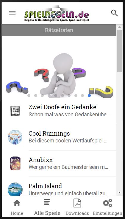 Alle Spiele, Anleitungen und Regeln von unserer Webseite könnt Ihr jetzt kompakt und auch offline immer mit euch mit führen. Egal ob in der Kneipe, dem Sportplatz oder in der Schule, ein kurzer Blick in unsere Spielregeln App und schon wisst Ihr wie man ein Spiel spielt oder wie die Regeln dazu sind.