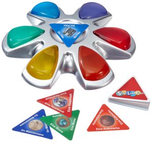 Sicherlich kennt jeder das Spiel Stadt, Land, Fluss, welches bereits in der Schulzeit häufig gespielt wurde. Bei dieser Variante wird das gesamte Spielprinzip auf den Kopf gestellt. Zwar müssen immer noch Objekte mit vordefinierten Buchstaben genannt werden, doch kommt es hier noch viel mehr auf die Geschwindigkeit der einzelnen Spieler an. Das elektrische Spielfeld gibt genau an, welcher Spieler am schnellsten gedrückt hat!