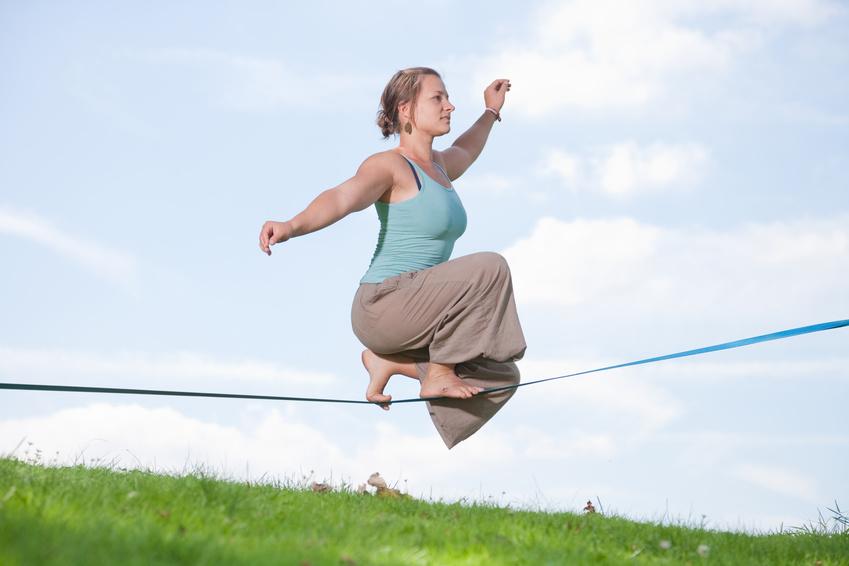 Ähnlich wie das Seiltanzen ist auch die Trendsportart Slackline. Hier balanciert man auf einem Kunstfaser- oder Gurtband, welches ...