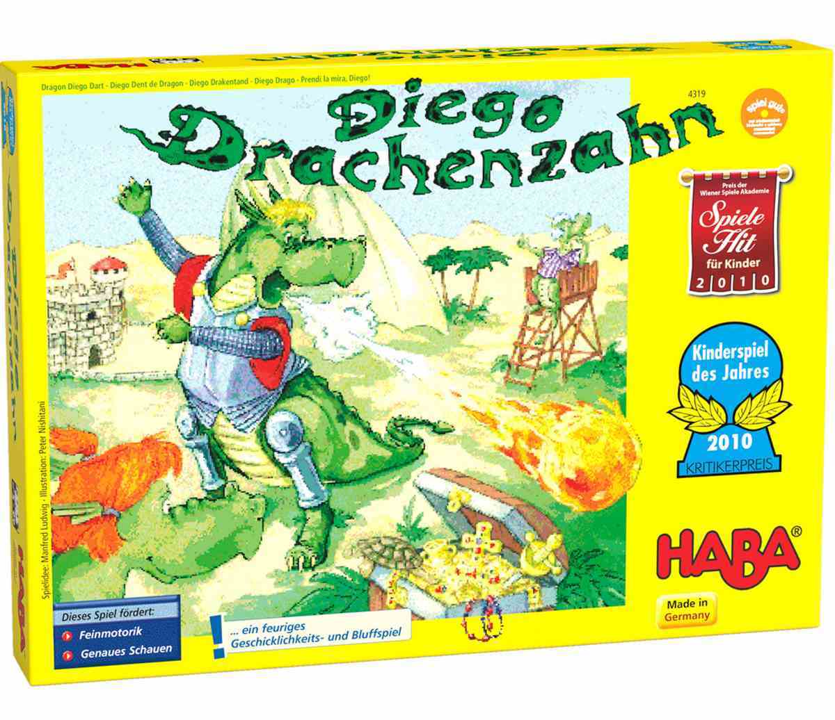 Bei diesem Geschicklichkeitsspiel veranstalten die Drachen einen Feuerspuckwettbewerb. Verspuckt und zugenäht – hat Diego doch glatt sein Ziel ...