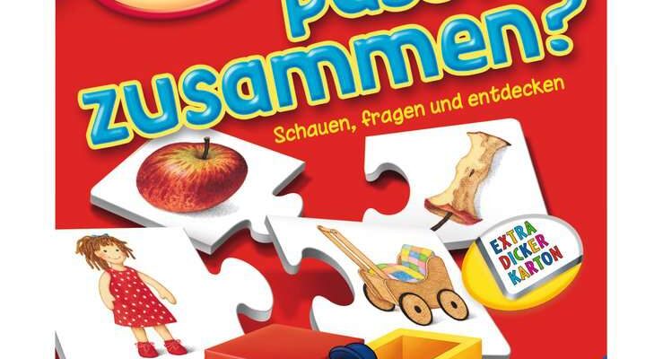 Das liebevoll gestaltete Kinderspiel „Was passt zusammen?“ fördert das genaue Schauen und Zuordnen von Dingen. So zum Beispiel ein leuchtend roter Apfel und einer, der schon fast aufgegessen ist. Oder eine Mutter im roten Kleid mit einem Kinderwagen. Geformt als eine Art Puzzleteile ist schnell erkennbar, was ein A- und was ein B-Teil sein soll. Für Kids ab einem Alter von zwei Jahren ist es das optimale Lernspiel. Da es nur zwölf Kartenpaare gibt, gibt es auch keine Überforderung.