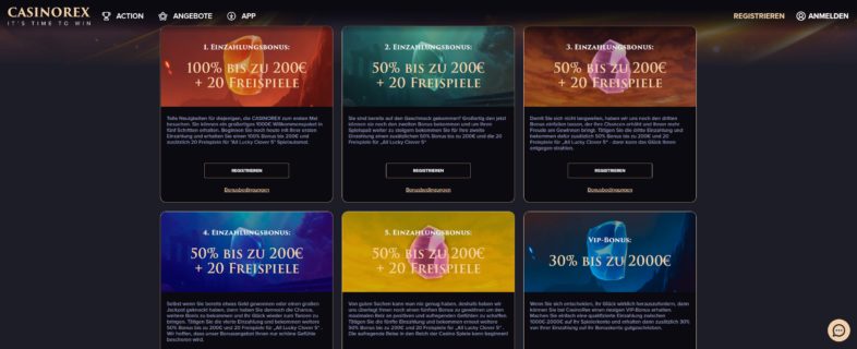 Die Mindesteinzahlung, die nötig ist um die vier Einzahlungsboni zu erhalten, beträgt 20 EUR. 40-fache Umsatzbedingung für Einzahlung & Bonus.