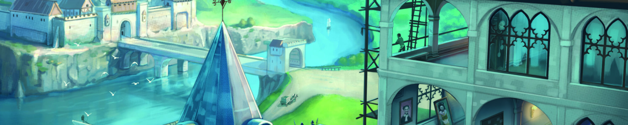 Ein Nachfolger von zwischen zwei Städten, ist das kooperative Spiel zwischen zwei Schlössern von Feuerland. Die Elemente bestehen aus den Schlössern von König Ludwig. Hier baut jeder mit seinem linken und rechen Nachbar ein Schloss auf. Natürlich möchte man niemanden übervorteilen, was gar nicht so einfach ist.